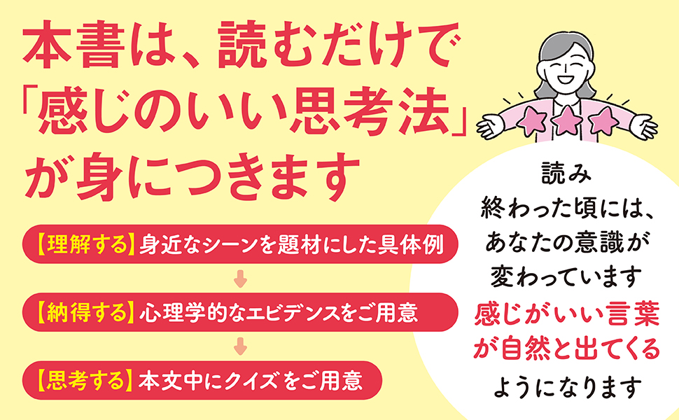 この本では、読むうちに「感じのいい人の考え方」が自然とインストールされるように工夫しています。