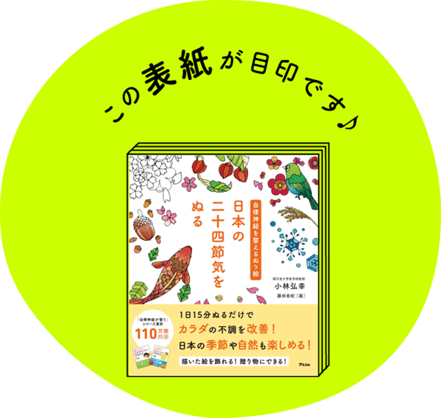 72万部のベストセラー『聞くだけで自律神経がCDブック』の著者で、自律神経研究の第一人者である順天堂大学の小林弘幸先生が開発した、話題のぬり絵『自律神経を整えるぬり絵』は、自律神経研究成果をもとに、規則的なモチーフやはみだしにくい&はみだしてもキレイに見えるものを採用しました!
